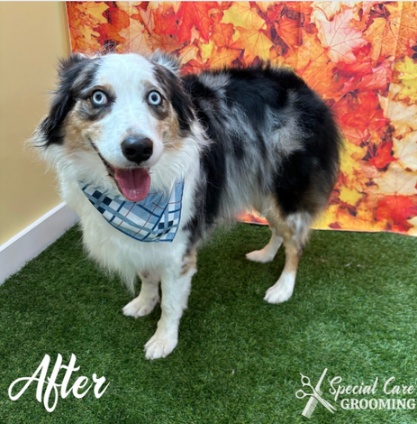 I found special care grooming on google and checked out the website. Was able to make an appointment right on the website and it was super easy. When I arrived Rachael was super friendly and greeted us outside. I asked her to shave my 2 mini aussies down and she did exactly what I asked. She did such a fantastic job. I would 100% recommend taking your babies here!